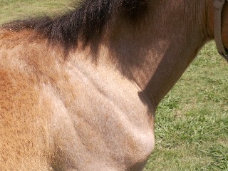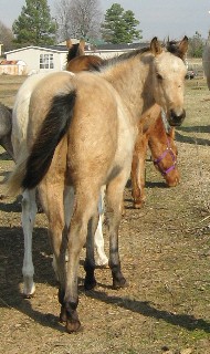 | Ruger decided to be a buckskin roan. This is a close up pic of his roan hair coming out. How cool is he? Too cool. Rare color and perfect disposition. What a combination;) |