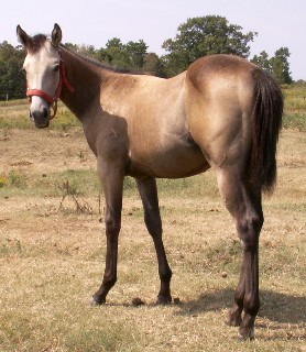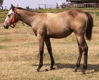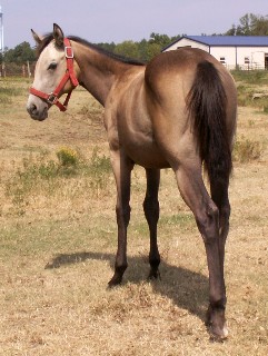 | Senors Silver Lariat(AQHA Registered)- Born April 27, 2007 at 9:45 pm. Buckskin stud colt with a small star. We bred Tin Doc Girl last year to a local stallion that is 27 years old this year named Senor Solano. We bred this mare this way because she is a half sister to the dam of Classy Solano( which is Candi's personal riding horse) and has been a stand out gelding in every way. When we crossed Holly to Senor, the foal would genetically be a almost full brother to Classy Solano. Then later on we came to find out that Holly was the only mare that he got in foal at all last year. We had our fingers crossed and were be for sale. He will probably be the very last foal by Senor who is a son of Doc's Solano and a grandson of Senor George. They just don't make them like him anymore. On the bottom side he is by Tin Doc Girl, she is a daughter of Tin Doc Holly(NCHA money earner) by Tinhorn Doc (Sire of NCHA money earners and AQHA Performance Point Earners) and is Poco Tivio (AQHA Champion Cutter, COA, NCHA money earner of $11,000+, ROM) and Doc Bar (sire of 27 AQHA Superior Performance Champions, AQHA Hall of Fame) bred on top. On bottom she is a grandaughter of Peeping Bo Badger(NCHA Money Earner) by Peppy San Badger (AQHA Hall of Fame, World Champion Cutter, ROM, 41 AQHA Performance Points, COA, NCHA Earnings of $172,000+) and is a great grandaughter of Docs Prescription.(NCHA Money Earner, ROM, 16 AQHA Perf. Points) She has produced foals off of Kit Dual and Smarts Are Better(both NCHA earners). This one will be a riding gelding for us one day. What a blessing that we received when he was born healthy and happy. Click here to see his pedigree. |