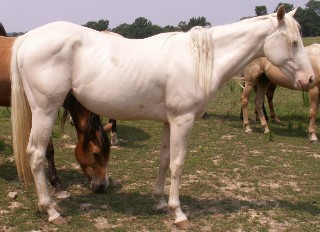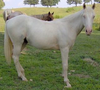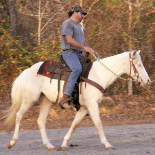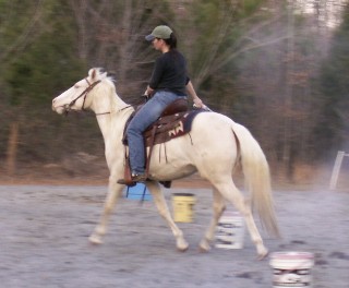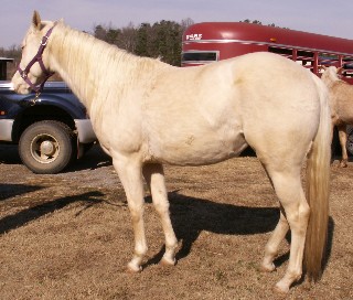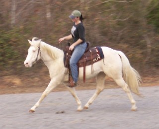 | This is Dreamie in December 2006. She did wonderfully riding and is so classy looking! Really filling out and looking just like a linebred Skipper W horse. Darren and Dianne even shot a gun off of her and we were very impressed! |