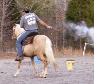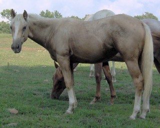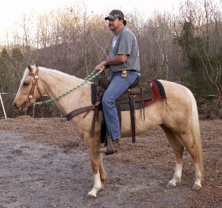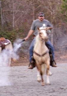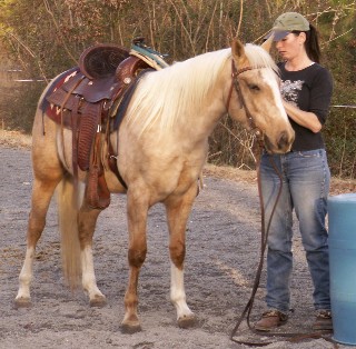 | These pics are of Jasmine in December 2006 after 30 days of riding. She did amazing. Very athletic and intelligent. Would have made a great performance horse. Darren and Dianne even shot a gun off of her. We are so happy with this young horse and are excited to see what she produces! |