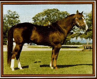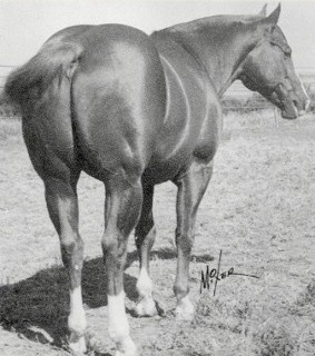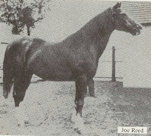 Joe Reed II 1936; Chestnut Joe Reed x Nellene Stallion Show Record Hall of Fame, '94 AQHA inductee World Champion, '42 RC ROM Performance, '43 RC SI: 85; Wins: 1; Stallion Offspring Record Hall of Fame Offspring, AQHA Superior Performance Offspring, RC AQHA Champion Offspring ROM Performance Offspring Race ROM Offspring NCHA Money-earners Race Money-earners NSBA Money-earners Halter Point Earners Performance Point Earners AQHA Offspring Record Total Points Earned: 128; Reg Foals: 347; Number Shown: 165; Point Earners: 16; Halter Points Earned: 49; Halter Point Earners: 9; Performance Points Earned: 79; Performance Point Earners: 9; Performance ROMS: 4; AQHA Champions: 1; Total ROM's: 4; Race Earnings: $272,222; Stakes Winners: 9; 90+ ROMS: 11; Race ROMS: 66; Superior Race: 6; Race Offspring Wins: 479; AQHA Offspr NCHA LTE: $5,187 AQHA Offspr NSBA LTE: $45 Outstanding Offspring Ada Jay Reed, si 85, 6 wins, $2,908 RC;, '59 RC ROM; '59 New Track records PRE 330 17.500; Brevity Joe, si i95, 25 wins, $14,945 RC;, '60 Superior RC Horse; Dido Reed, 22 HLT & 13 performance points;, '68 O AQHA Champ.; Dusty W, si 75, 9 wins, $870 RC, '47 RC ROM Hy Myrt, si 85, 9 wins, $3,448 RC, Track records; '48 RC ROM; Joak, si 95, 9 wins, $6,333 RC;, '50 RC ROM; '52 Equal Track Rcd FPX 333 17.300 Joe Queen, si 95, 8 wins, $13,307 RC;, '55 CEN 440 1st RMQHA World Ch Dash $2,035; '56 New Track Record 12.200 Joelle, si 75, 4 wins, $1,710 RC, '52 RC ROM; K Hornet, si 85, 12 wins, $8,601 RC, '55 RC Superior RC Horse; Leo, '89 AQHA Hall of Fame Little Sister W, si 95, 22 wins, $10,025 RC, '52 Superior RC Horse; Mr Joe Big, si 95, 9 wins $10,699 RC;, '56 Superior RC Horse; Poison Ivy, si 75, 22 wins, $3,504 RC;, '47 RC ROM Rusty Wentz, si 85, 18 wins, $1,553 RC;, '47 RC ROM Sandy Reed, si 85, 2 wins, $850 RC;, '50 RC ROM; Sierra Hotshot, si 95, 25 wins $26,289 RC;, '60 Superior RC Horse; Tom's Lady Gray, si 85, 4 wins;, '47 RC Track record 18.900 Tonta Lad, si 95, 36 wins, $31,452 RC;, '53 Superior RC Horse; Whisper W, si 85, 5 wins, $914 RC;, '48 RC ROM Joe Reed II was the 1943 World's Champion Running Stallion. This title was won on heart alone. Joe Reed II had received a severe barbed wire injury as a two year old. He also injured the frog of a front leg when he stepped on broken glass while he worked cattle on the ranch. This injury never healed and was a problem until the day he died nearly twenty years later. After running on two bad legs for two weeks, Joe Reed II was too sore to train for the championship Finals against the current champion, Clabber (known as the "Iron Horse"). At the beginning of the race, Joe Reed II's injured frog broke open and began to bleed profusely covering both him and his rider with blood.Joe Reed II and the Iron Horse, Clabber, ran down the straightaway nose to nose and eye to eye neither willing to give in to the other. These two great stallions ran down the stretch in a dead heat. Joe Reed II, despite his severe pain, refused to lose. From deep within his courageous heart, he mustered the strength to begin to move ahead of Clabber an inch at a time until they reached the finish line. Joe Reed II won his "Red Badge of Courage" by a head over the great Clabber. Such was the heart and courage of this wonderful horse.