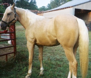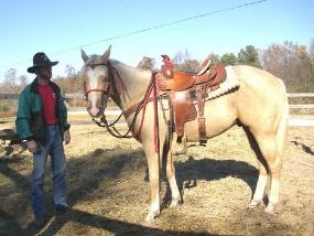| Pics below are of Lucky Chance a 2003 Palomino Stallion by Lucky when he was being broke to ride. Isn't he gorgeous! We purchased Chance back fall of 2008 and have gelded him. He is now Wes' main riding horse. |